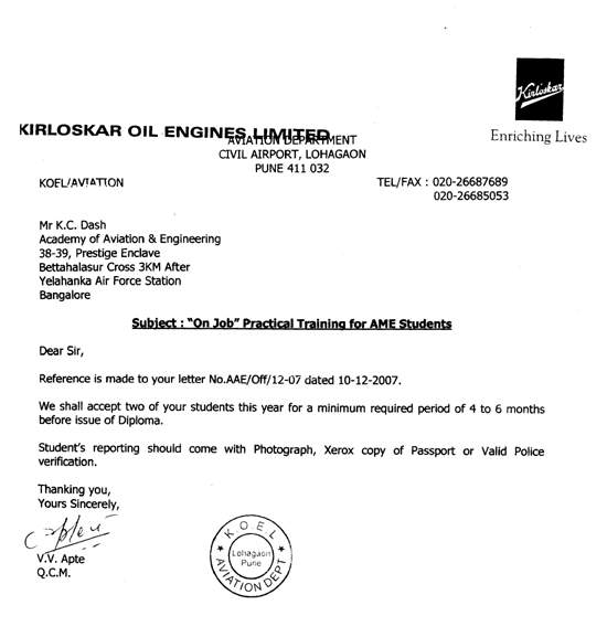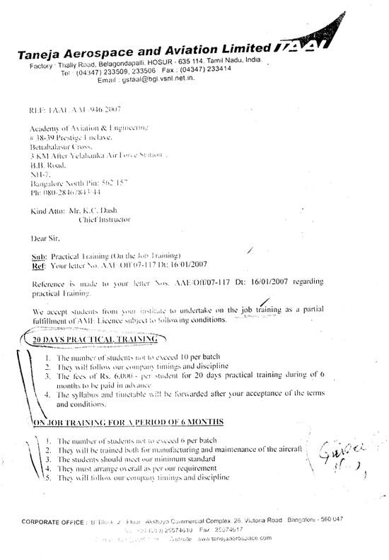 NOTE: ACTUAL STUDENT COST FOR THE ON JOB TRAINING SHOULD BE PAID DIRECTLY TO THE CONCERNED ORGANISATION UNDRTAKING THE ON JOB PRACTICALS. |